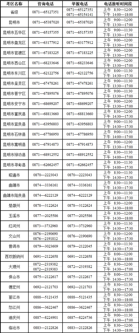 云南省2025年成人高考考试期间咨询及举报联系方式