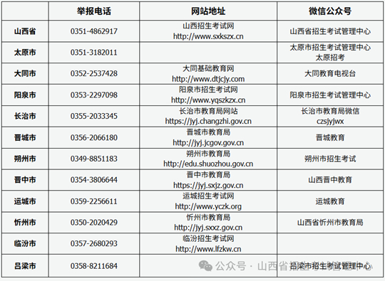 山西省2025年成人高考考试期间举报电话、网站地址及微信公众号