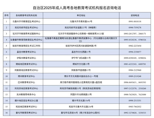 自治区2025年成人高考报名已经结束。目前,还有部分已报名审核通过的考生未及时完成网上缴费,为确保所有审核通过的考生能够参加2025年成人高考,决定延长成人高考网上缴费时间至10月15日16时。如网上缴费过程中出现异常情况,请及时联系当地教育考试机构(联系方式附后)。