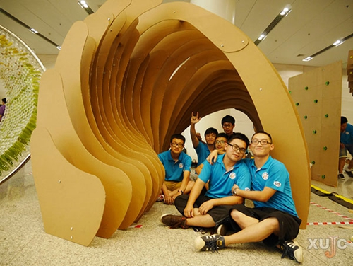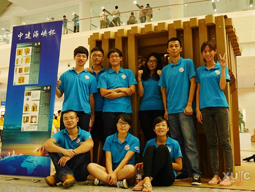 赛事要求选手运用建筑专业知识,利用生活中的废弃材料,在9平方米面积上“盖”出各式各样的迷你建筑,从中体现参赛大学生的创新、实践与团队协作能力。在比赛过程中,每个参赛队伍需推选一名成员与其他高校队伍进行人员交换,共同完成整个搭建过程。嘉庚学院队伍有幸与台湾淡江大学进行队员交换,在比赛中学到了台湾学生较强的手工能力和敏捷的思维。