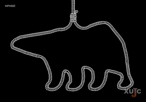 石廷金老师的入选作品《The IUCN Red Data Book in Future》用夸张的表现手法将企鹅编入未来世界自然保护联盟(IUCN)红皮书,希望能够引起人们对于生态文明的重视;作品《Impasse》用绳子编织成北极熊自缢的形象,其象征着整个动物群体逐渐走向衰落,呼吁人们保护动物,莫让动物走到绝境;作品《Disappear》将长颈鹿的形象与世界地图及多个国家的地图相融合,画面中长颈鹿的逐渐消失寓意地球的消逝与人类的迷失。这3件作品将被收入本届三年展作品集中,并于“4TH BLOCK”生态国际海报三年展中展出,而获奖结果将由赛事组委会于今年四月底公布。