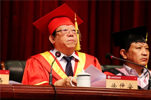 典礼在激昂、奋进的国歌声中拉开帷幕。山西大学商务学院学位评定委员会主席、院长徐仲安教授致辞。徐仲安院长代表学院向圆满完成学业,即将奔赴工作岗位或继续深造的2015届毕业生致以由衷祝贺和美好祝愿,也向为培养同学们付出诸多心血和汗水的各位教师和家长致以崇高敬意。在这个“大众创业,万众创新”的新时代中,商务学院积极应对时代需求,一系列的创业教育结出了累累硕果,徐仲安院长与在座的未来创业者们分享心得:第一要学习别人失败的经验;第二要理性看待自己;第三要保持良好心态。“我们正在从一个讲求逻辑与计算的信息时代,迈入一个重视创新和整合力的感性时代。所以,作为新晋商的传承者,同学们要善抓机遇,坚持学习,不断更新观念,在这样一个变换的时代,勇于成为推动企业、行业转型提升的新生力量。这也是学院人才培养的终极目标。”徐仲安院长对走向未来人生之路的所有在座同学们提出殷切期望和嘱托。