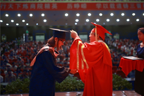在学院副院长杨继平教授宣布2015届毕业生毕业及学位授予情况后,毕业生代表分批有序地走向主席台,接受学位授予。