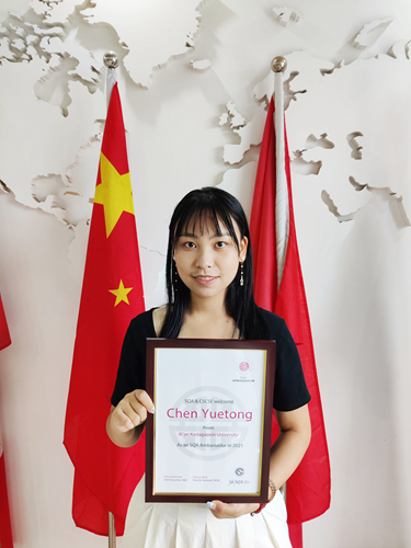 | 西安科技大学高新学院陈玥彤同学被授予2021年SQA-AD理想大使光荣称号 |