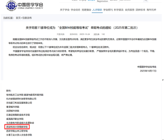 | 锚定数智转型 赋能人才培育——西安科技大学高新学院成功获批“全国BIM技能等级考试”考点 |
