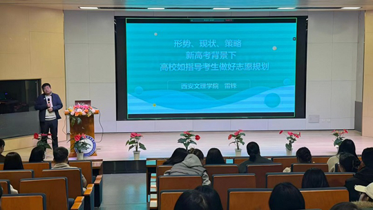 近日,西安科技大学高新学院招生办公室精心组织了两场专题培训,特邀知名教育专家王国强老师和知名志愿填报专家雷锋老师来校,面向全院招生骨干教师开展深度辅导。此次系列培训聚焦新高考改革背景下高校招生工作的机遇与挑战,旨在提升招生队伍的专业素养与业务能力,为学院新一年招生工作的顺利推进奠定坚实基础。