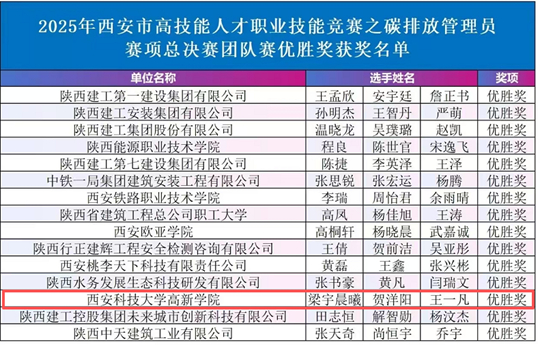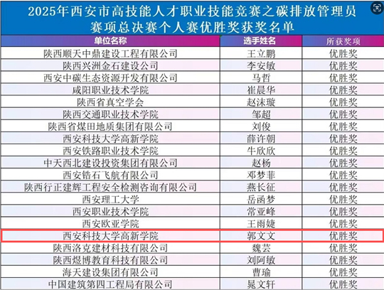 | 喜报!西安科技大学高新学院科技与工程学院城建系在2025年西安市碳排放管理员竞赛中斩获两项优胜奖! |