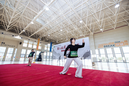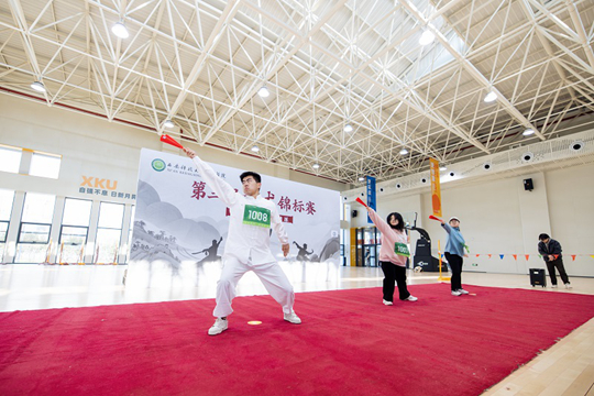 本次比赛项目设置主要以目前所开设课程为主,丰涵盖了拳术、器械等多个类别,既包括刚劲有力的长拳、舒展沉稳的太极拳(剑)、功夫扇,也有棍扫一片的长器械。赛场上,选手们精神抖擞,一招一式规范到位,动作或刚柔并济,或疾徐有致,将武术的“形、神、劲、律”展现得淋漓尽致。集体项目中,队员们默契配合,阵容整齐划一,气势恢宏,赢得了现场观众的阵阵掌声。