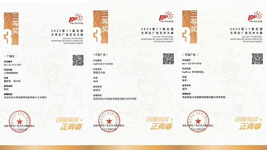 西安科技大学高新学院已连续三年荣获大广赛“优秀院校”称号,这一成绩的取得,是学院长期深耕实践教学、深化产教融合的有力见证。近三年来,学院在大广赛中屡创佳绩,累计有超10名教师凭借出色的指导成果荣获国家级奖项,奖项涵盖全国三等奖、优秀奖等多个级别;获奖作品题材丰富、创意新颖,充分展现了学院学子卓越的创新思维与扎实的实践能力。