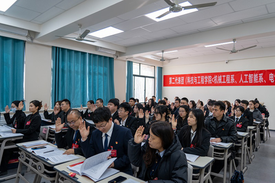 闭幕式上,大会通过了关于两委工作报告的决议。西安科技大学党委委员、副校长曹明同志发表讲话,对大会圆满成功和新当选的“两委”委员表示祝贺。他对学院今后工作提出明确要求:要持续增强基层党组织的政治功能和组织功能,以高质量党建引领教育事业高质量发展;要牢牢把握立德树人根本任务,深化“三全育人”综合改革;要坚定不移推进全面从严治党,持续巩固风清气正的政治生态和育人环境。