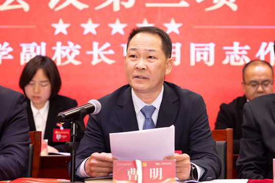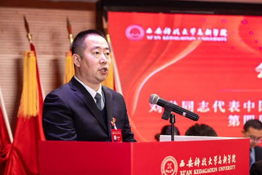 刘琳同志代表中国共产党西安科技大学高新学院第四届委员会,向大会作了题为《砥砺初心 开拓创新 为建设特色鲜明的高水平应用型高等院校而努力奋斗》的工作报告。