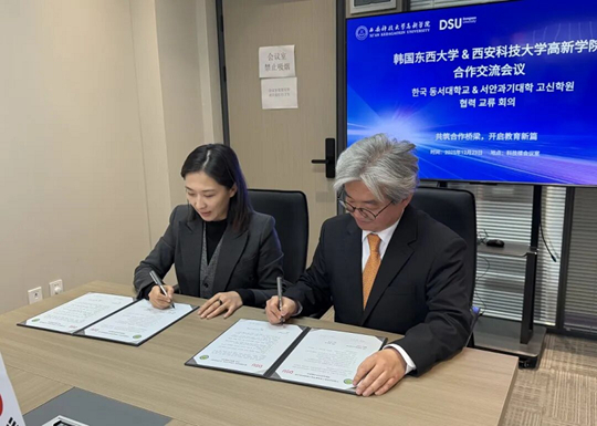 2025年12月22日至24日,韩国东西大学国际处处长韩京镐、国际处国际学生支援科科长李贤珍一行莅临西安科技大学高新学院开展友好访问。西安科技大学高新学院副院长张晨携国际化发展中心、韩语教研室、中韩项目拓展部等相关部门负责人热情接待代表团,双方围绕学术合作、师生交流、科研共建等核心议题深入研讨,正式签署MOU合作协议,为两校深化战略合作、共育国际化人才奠定坚实基础。