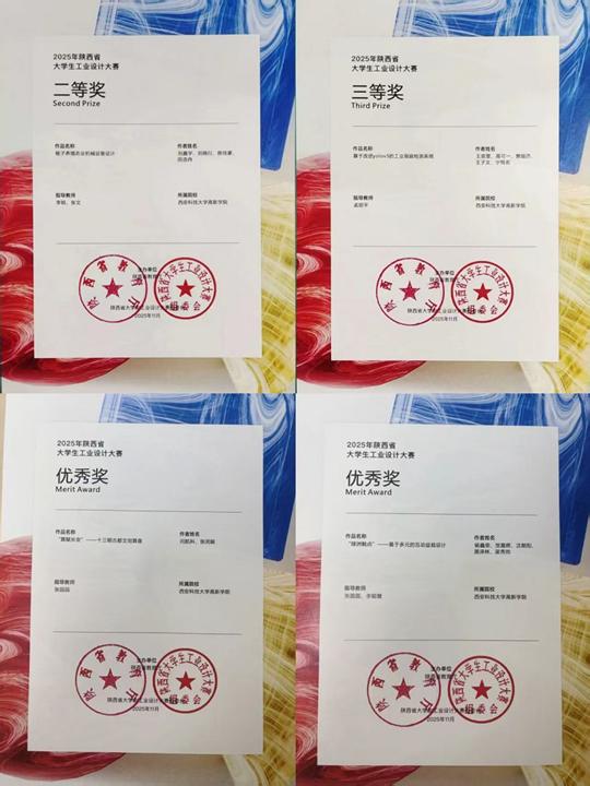 | 西安科技大学高新学院学子在2025年陕西省大学生工业设计大赛斩获多项殊荣 |