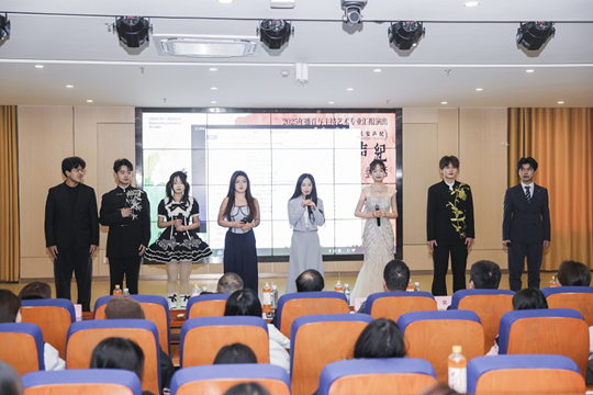整场演出宛如一堂移动的、沉浸式的“大课”,每一个节目都是实践教学反哺课堂教学的鲜活案例。《播音创作基础》《节目主持艺术》等课程的理论知识,在舞台上转化为具有艺术感染力和社会传播价值的实践成果。刘晓、李卓如、王媛、贺梓萱等指导教师将舞台变为第二课堂,全程跟进指导、实时点拨,实现了课堂教学与舞台实践的无缝衔接。这种“教师引导、项目驱动、舞台呈现”的育人模式,正是学院深化实践教学改革的生动缩影。它打破了教室的物理围墙,将人才评价标准从试卷分数,拓展为综合的舞台表现力、创意策划力与团队协作力,更实现了实践教学对日常课堂的反向赋能——舞台上的打磨,让学生对专业理论的理解更深刻、应用更灵活,推动课堂教学质量持续提升。