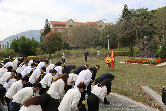 4月5日清明节当天,厦门大学漳州校区举行清明祭扫仪式,深切缅怀校主陈嘉庚先生与厦大杰出校友高捷成烈士。