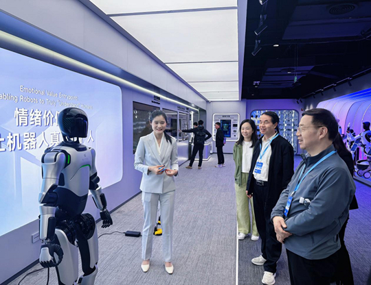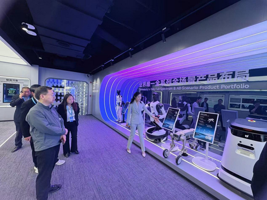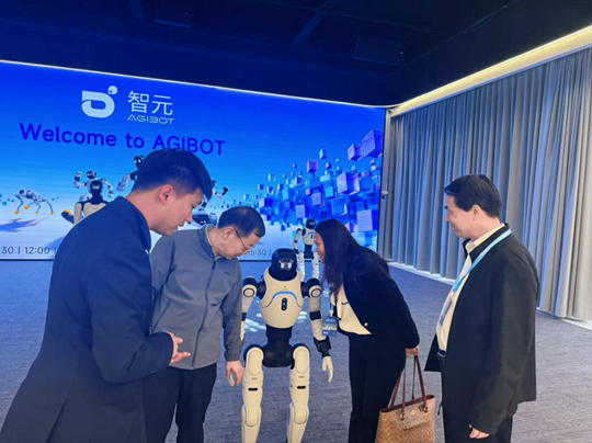 考察团一行首先参观了智元机器人展厅,现场观摩了多款人形机器人的动态演示,从灵活的舞蹈表演到精准的多场景交互,直观感受了具身智能技术的前沿成果与商业化落地潜力。