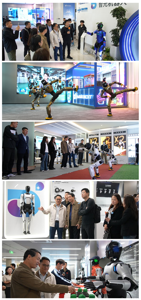 考察期间,王国良院长一行实地参观了智元机器人上海总部展厅与苏州6S智能制造展厅,详细了解了企业在人形机器人核心技术研发、产品迭代、商业化落地及全球化布局等方面的最新成果,近距离观摩了智元机器人在环境感知、任务理解、物理执行等环节的技术实力,深入学习了企业以AIMA技术生态底座为支撑,构建“灵创、灵心、精灵”三大开发平台,赋能开发者与生态伙伴的全栈式技术体系。