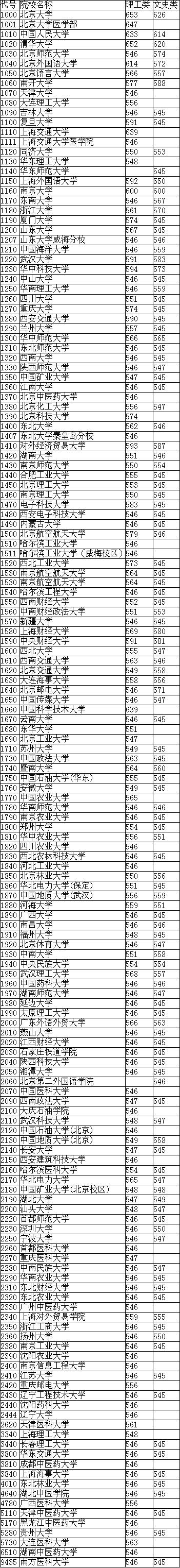 湖北06年第一批本科录取院校第一志愿投档线