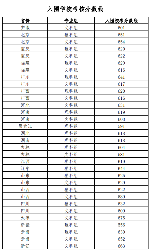 1.入围校考:根据各省提供的高考成绩,按照简章明确的入围校考办法确定各省入围名单,入围名单已公布,考生可自行登录我校强基计划报名系统(网址:https://bm.chsi.com.cn/jcxkzs/sch/10027)查看,不再另行通知。各省份分组别入围分数线详见附件。