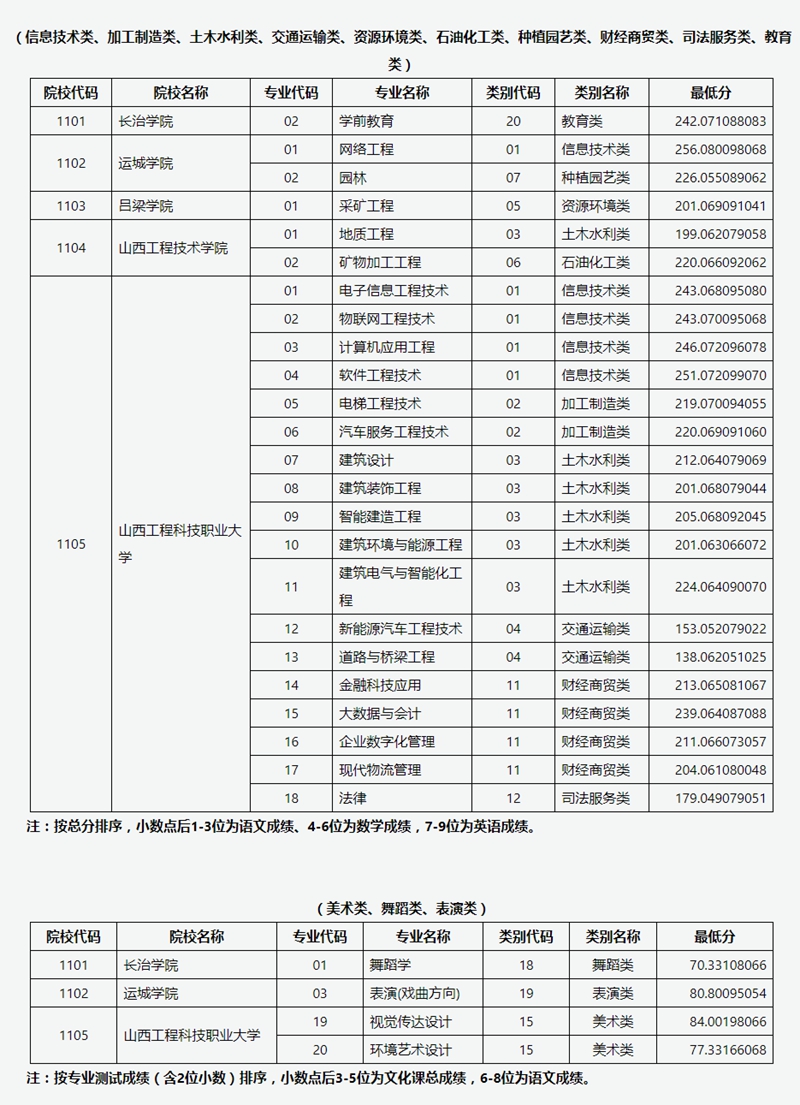 山西省2022年对口升学录取第一批本科院校投档最低分