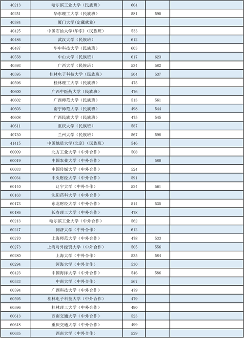 广西:2022年普通高校招生本科第一批最低投档分数线