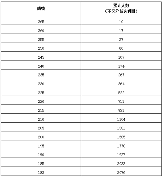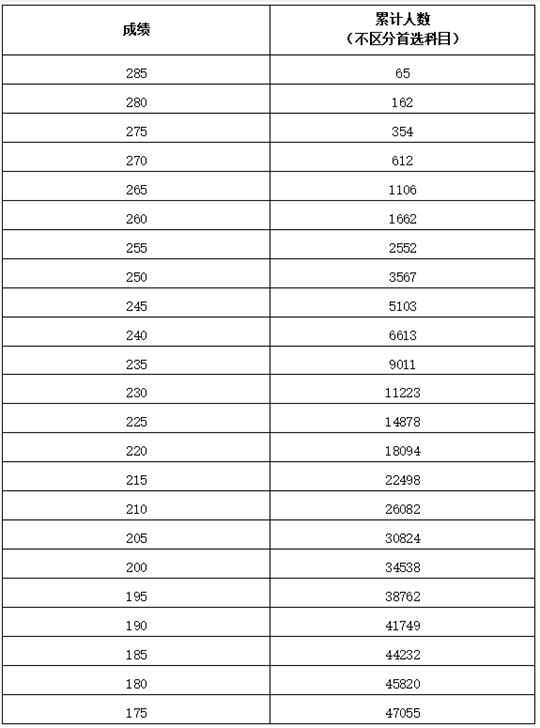 注:累计人数指该对应分数及以上考生累计人数