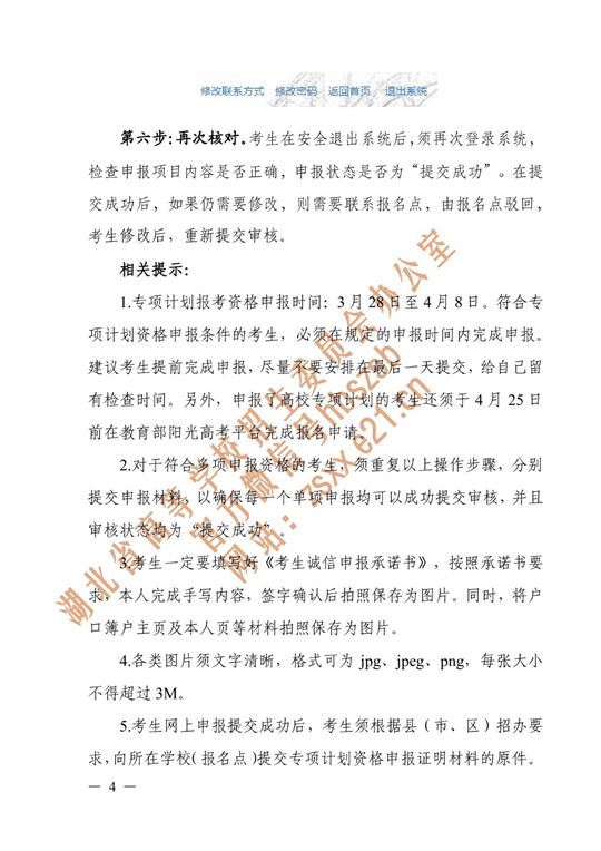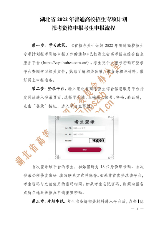 湖北省2022年普通高校招生专项计划报考资格申报考生申报流程