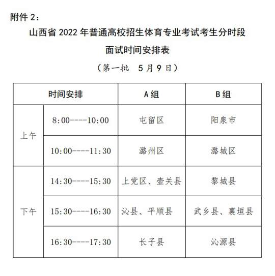 附件2:2022年普通高校招生体育专业考试考生分时段面试时间安排表 点击查看