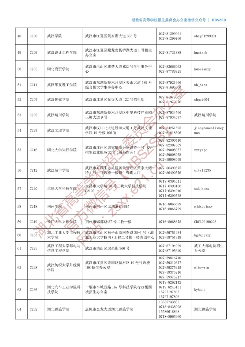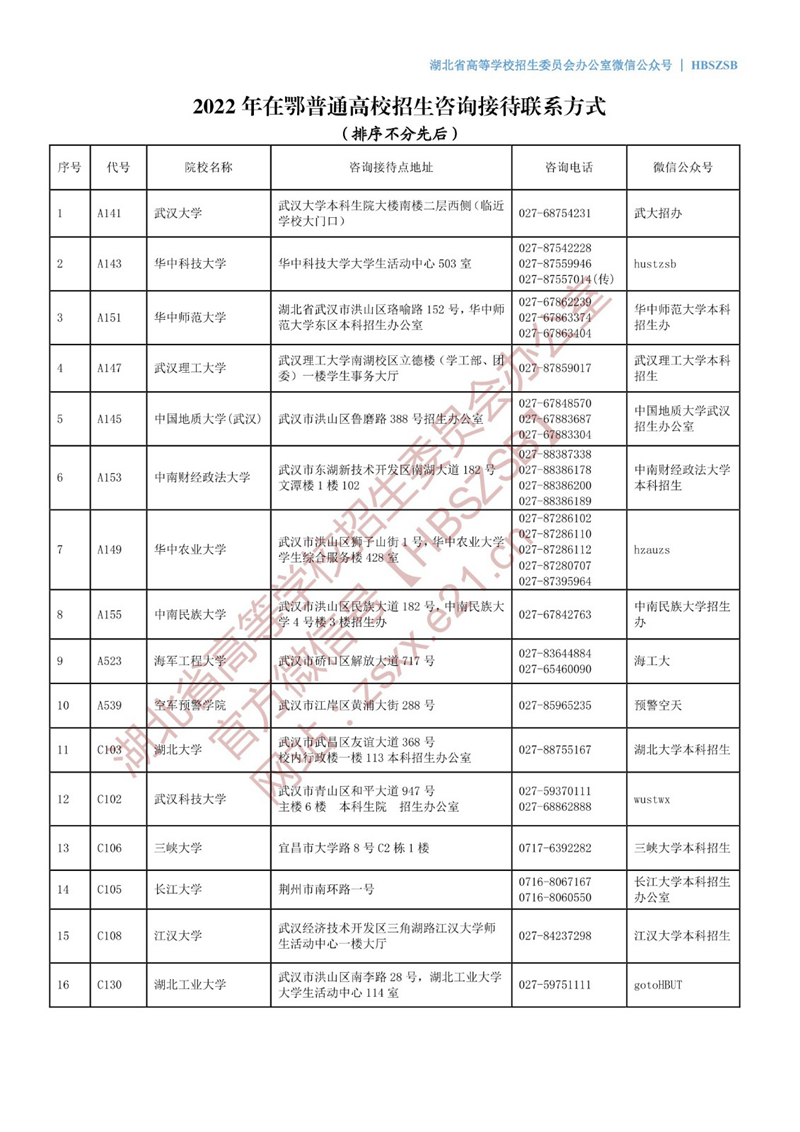 2022年在鄂普通高校招生咨询接待联系方式