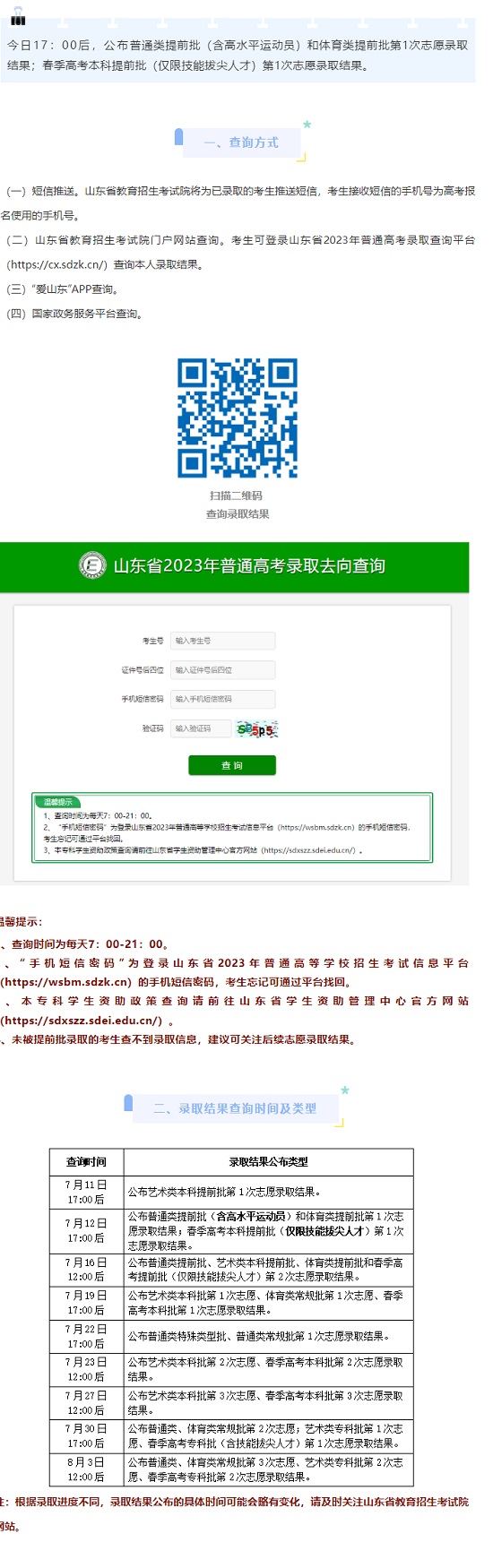 山东:7月12日17:00后公布提前批第1次志愿录取结果(普通类、体育类、春季高考本科)