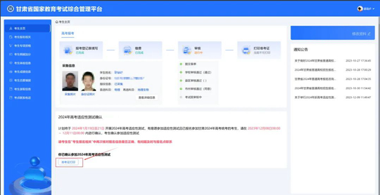 | 2024年甘肃省高考适应性演练测试准考证打印公告 |