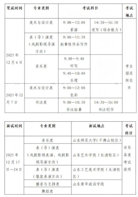 山东省2026年普通高等学校招生艺术类专业统一考试公告 |