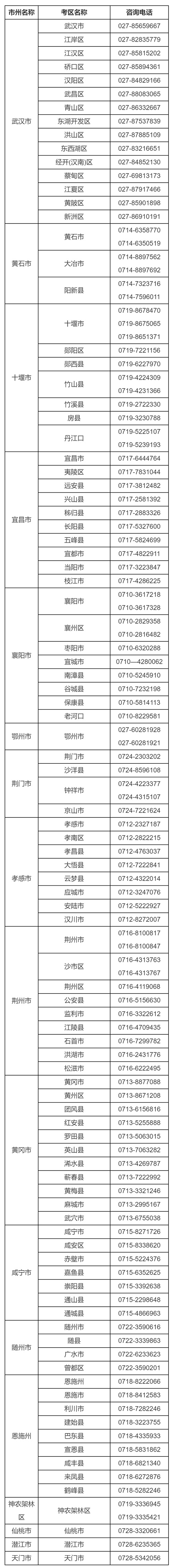 2026年湖北省各市(州)考区普通高考报名咨询电话