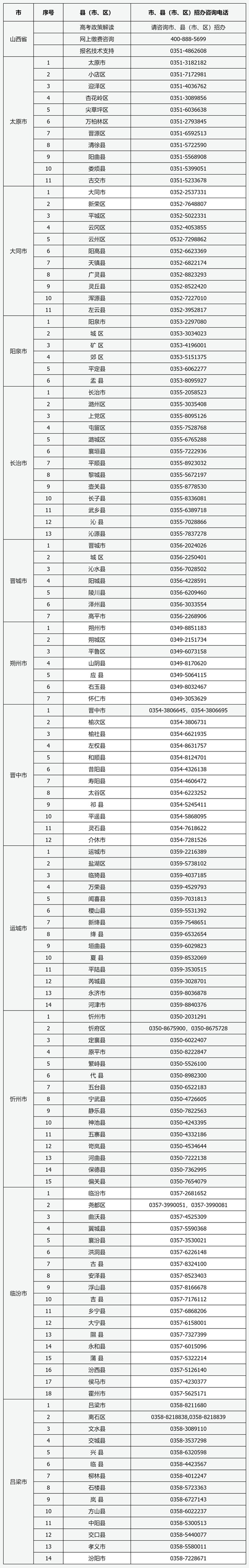 山西省2026年普通高考网上报名及确认考生咨询电话