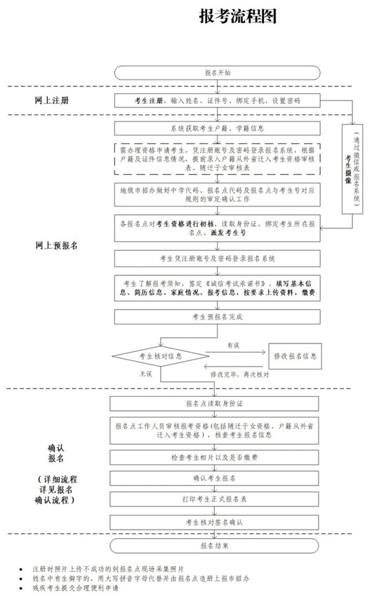 答:我省2026年普通高考报名基本流程分为四个部分:考生注册→报名资格初核→网上报名→确认报名。(详见流程图)