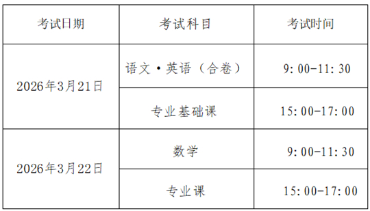 考点设在省辖市招生考试机构所在地,各地招生考试机构统一打印准考证后交由考生所在学校发给考生,考生凭本人身份证和专业准考证按规定时间参加考试。考试成绩于2026年1月12日公布。