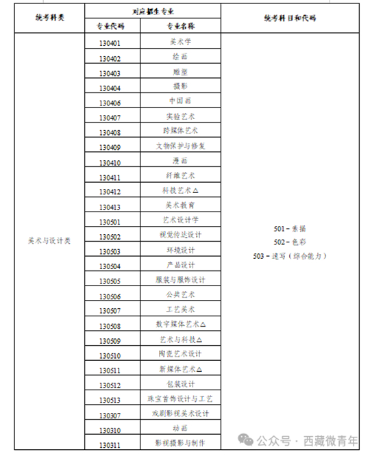 | 西藏自治区2026年普通高等学校招生艺术类 (美术与设计类)专业报考简介 |