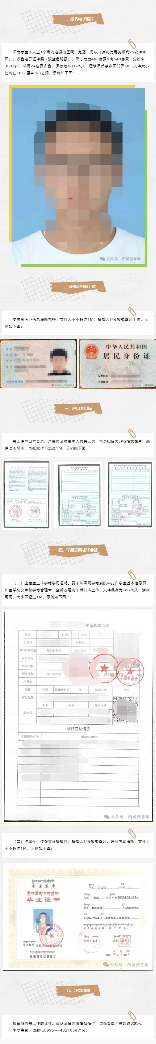 2026年高考社会考生报名将于11月11日正式启动。请考生登录西藏教育考试院官网或关注西藏微青年微信公众号,仔细阅读2026年高考报名通知,全面掌握报名流程。考生须在规定期限内登录西藏自治区普通高校招生考试信息管理系统,完成普通高考报名手续。为便利我市考生及家长,特此规范相关报名材料的扫描标准。请考生及家长严格遵循以下规范进行材料扫描与上传,确保报名过程高效、顺畅。(http://ptgx.zsks.edu.xizang.gov.cn:8082)(点击查看)