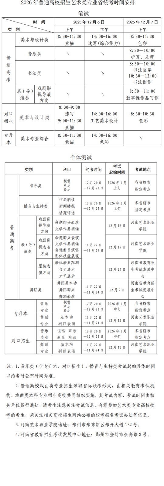 | 河南省2026年普通高校招生艺术类专业考试(含专升本、对口招生)温馨提醒 |