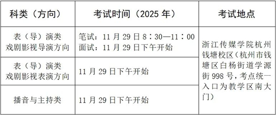表(导)演类戏剧影视导演方向:笔试科目,考生须携带2B铅笔、黑色字迹的钢笔或签字笔,按答题纸上的要求作答。笔试科目在开考信号发出后方可开始答题;考试结束前30分钟方可交卷出场。笔试结束信号发出后,考生应立即停笔并停止答题,在监考员依序收齐答题纸、试卷后,根据监考员指令依次退出考场。