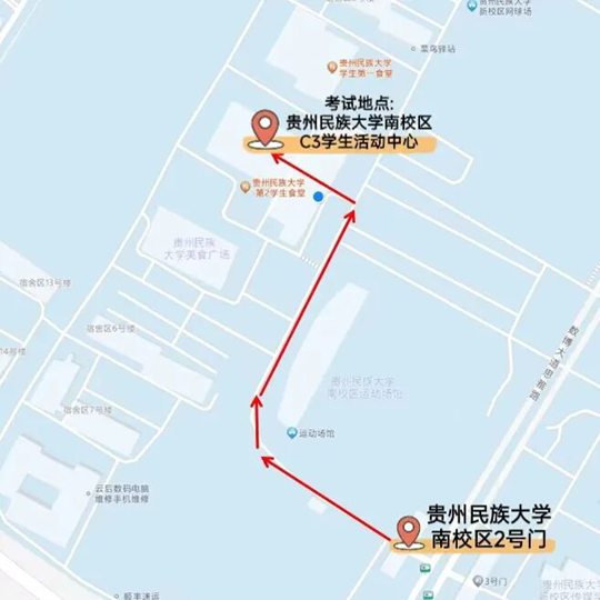 (三)考生应提前40分钟到达考点候考区(贵州民族大学南校区C3学生活动中心入口),接受安全检查并进行检录(检录截止时间以考试区域入口处时钟显示时间为准),未能按时参加考试的视为自动放弃。