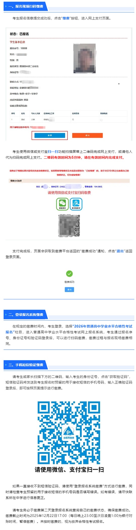 | 安徽省2026年普通高中学业水平合格性考试报名考试费缴费流程 |