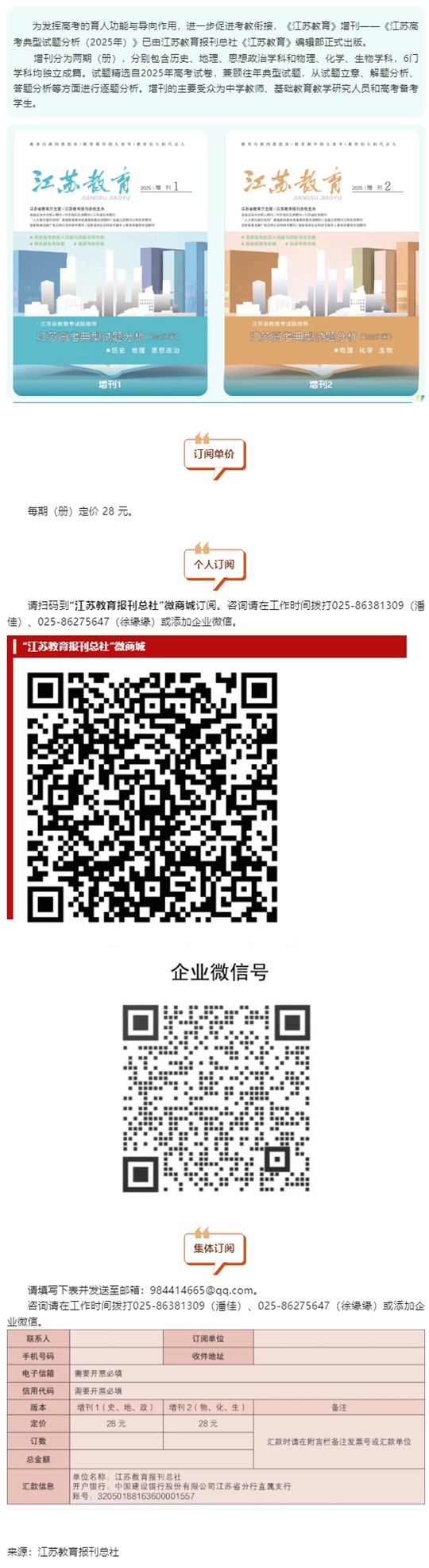 江苏教育报刊总社《江苏教育》编辑部正式出版《江苏高考典型试题分析(2025年)》