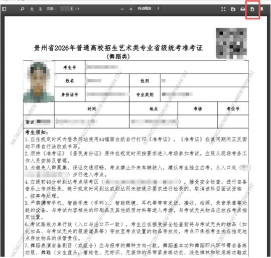| 贵州省2026年普通高等学校招生艺术类专业省级统考准考证打印操作步骤 |