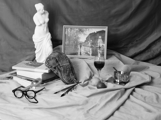 试题中选用的书本、水果、不锈钢咖啡杯等不同形态的物体,其中既有自然形态,又有设计形态,能够多层面考查学生运用色彩塑造形体的能力;试题中静物有硬朗的石膏、挺括的牛仔帽、柔软的衬布等,能够很好地考查学生运用色彩工具对不同质感物体的深入刻画与表现能力;《米洛斯的阿芙洛狄忒》雕像是古典美术的典型代表,有着近乎完美的形态比例,在不同版本的高中美术教材中均有出现,可以考查学生对教材的熟悉程度和应有的艺术素养,同时白色石膏像用色彩的方式来表现,能有效考查学生色彩技法运用能力及画面的艺术表现力;带框风景画放入画面,在以静物为主体的试题中加入了风景元素,使画面的整体节奏、色彩产生了更丰富的变化,可以进一步考查学生对画面的整体把控和组织能力。