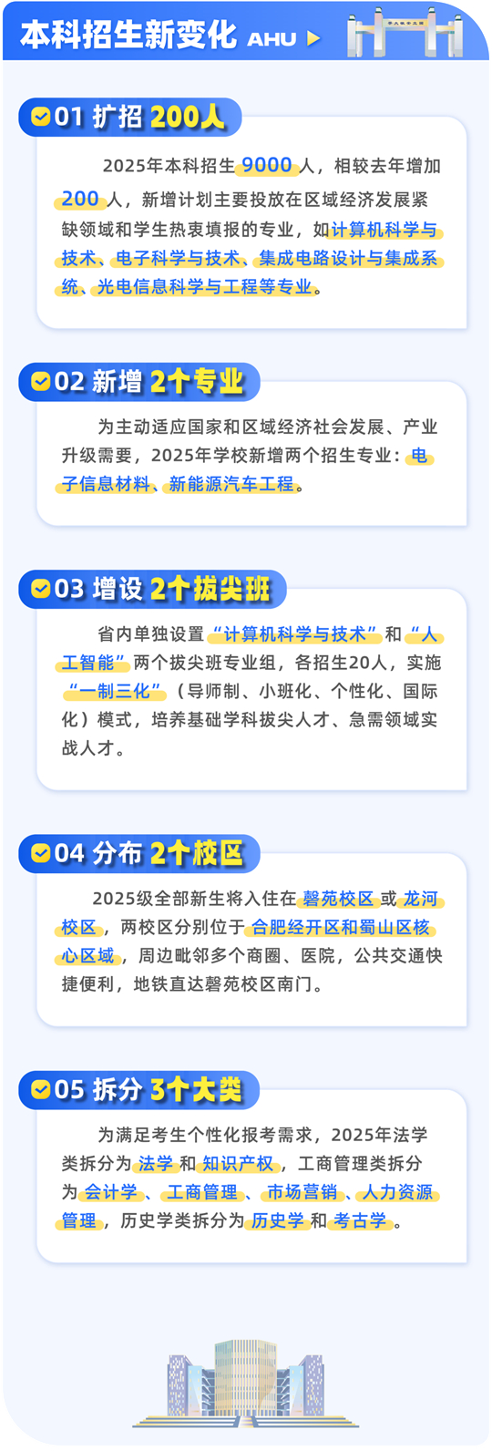 | 扩招!新增专业、拔尖班……安徽大学2025年五大本科招生新变化一起来看 |