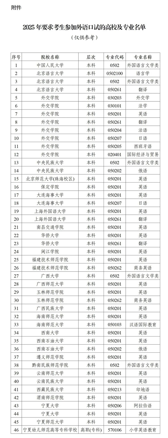 附件:2025年要求考生参加外语口试的高校及专业名单.pdf(点击查看)