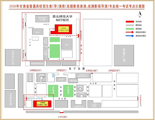 笔试考点设在西北师范大学云亭校区(地址:兰州市安宁区安宁东路967号),面试考点设在西北师范大学知行校区(地址:兰州市安宁区邱家湾37号)。