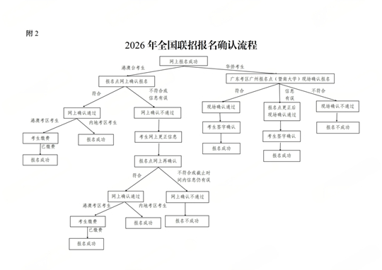 港澳台考生实行网上报名确认,3月11日起由相应考区报名确认负责机构负责;华侨考生实行现场报名确认,由广东考区广州报名点(暨南大学)负责。具体进度由各考区(报名点)负责机构安排。