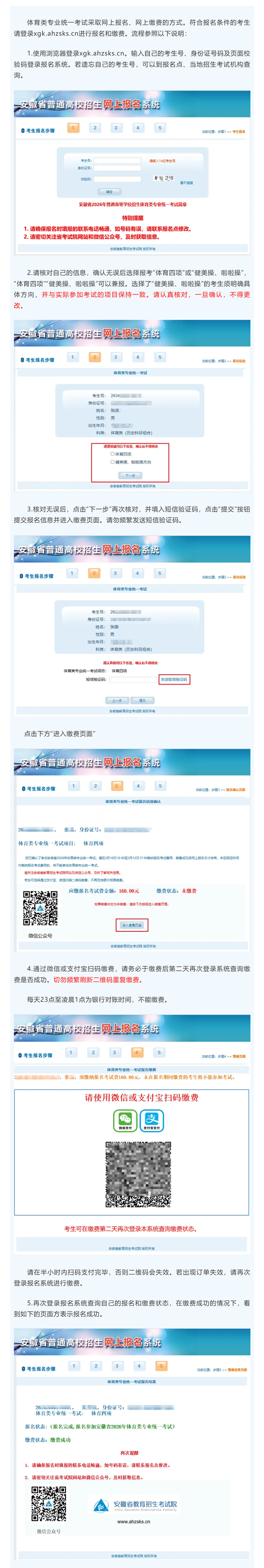 | 安徽省2026年普通高等学校体育类专业统一考试报名及缴费指引 |